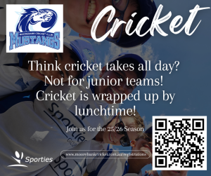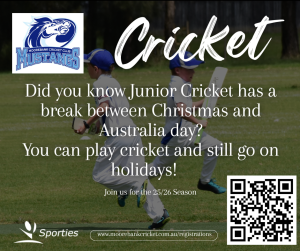 The Moorebank Cricket Club season typically begins in September and runs through to March. Games are not played through the Summer holidays (end December and the start of January). You can still enjoy your summer break!